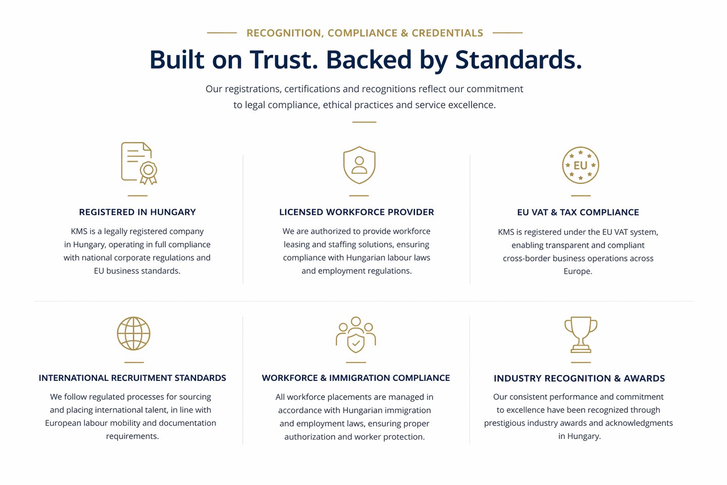 At Kovács Management Services (KMS), our mission is to deliver reliable, efficient, and compliant workforce solutions that support the operational success of our partners across Europe.