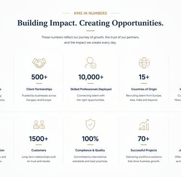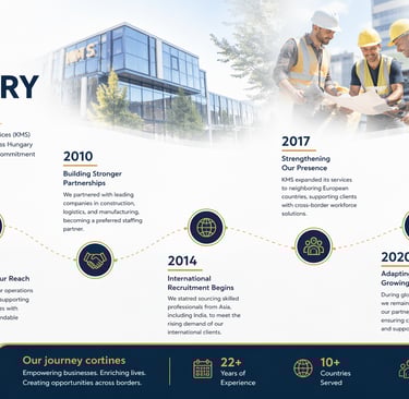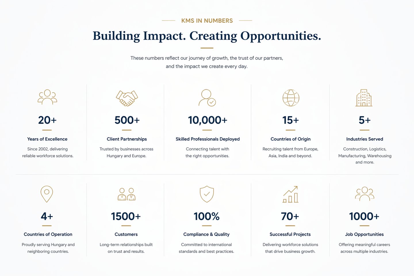 We strive to build a sustainable ecosystem where businesses can scale with confidence and individuals can access stable, rewarding careers across borders. By continuously adapting to evolving industry demands and international labor dynamics, KMS aims to strengthen its presence across Hungary and neighboring countries while expanding its global recruitment capabilities.